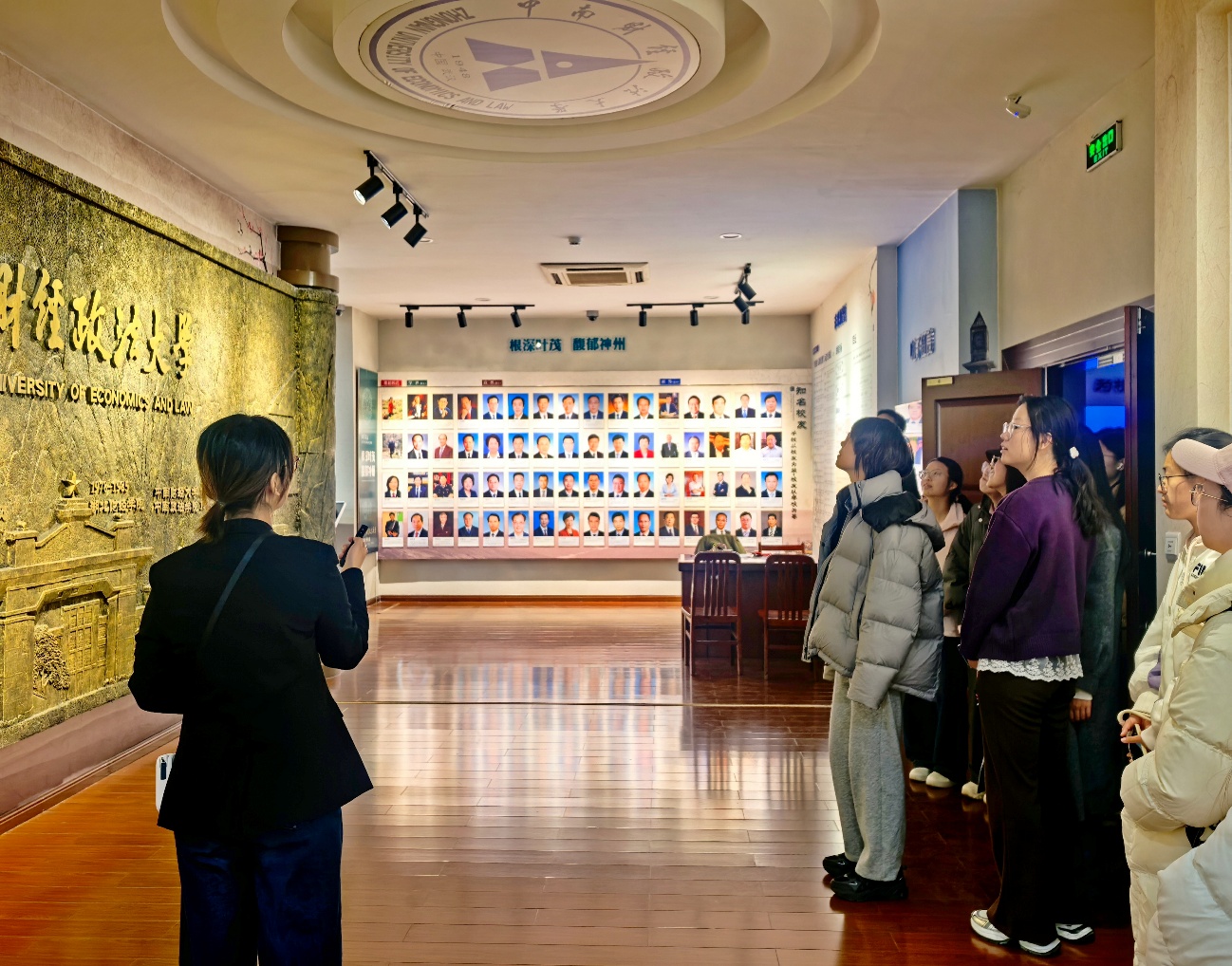 在讲解员的带领下,学员们有序入馆,沿着时间脉络开启校史学习之旅。讲解员通过珍贵的历史照片、翔实的文献资料、生动的实物展品,将学校的发展历程清晰呈现。从财经政法类学科建设的深耕细作,到人才培养、科研创新、社会服务等领域的丰硕成果,学员们直观感受到了学校“博文明理,厚德济世”校训背后的深厚底蕴,以及一代代中南大人坚守初心,“走向人民需要的地方”的责任担当。